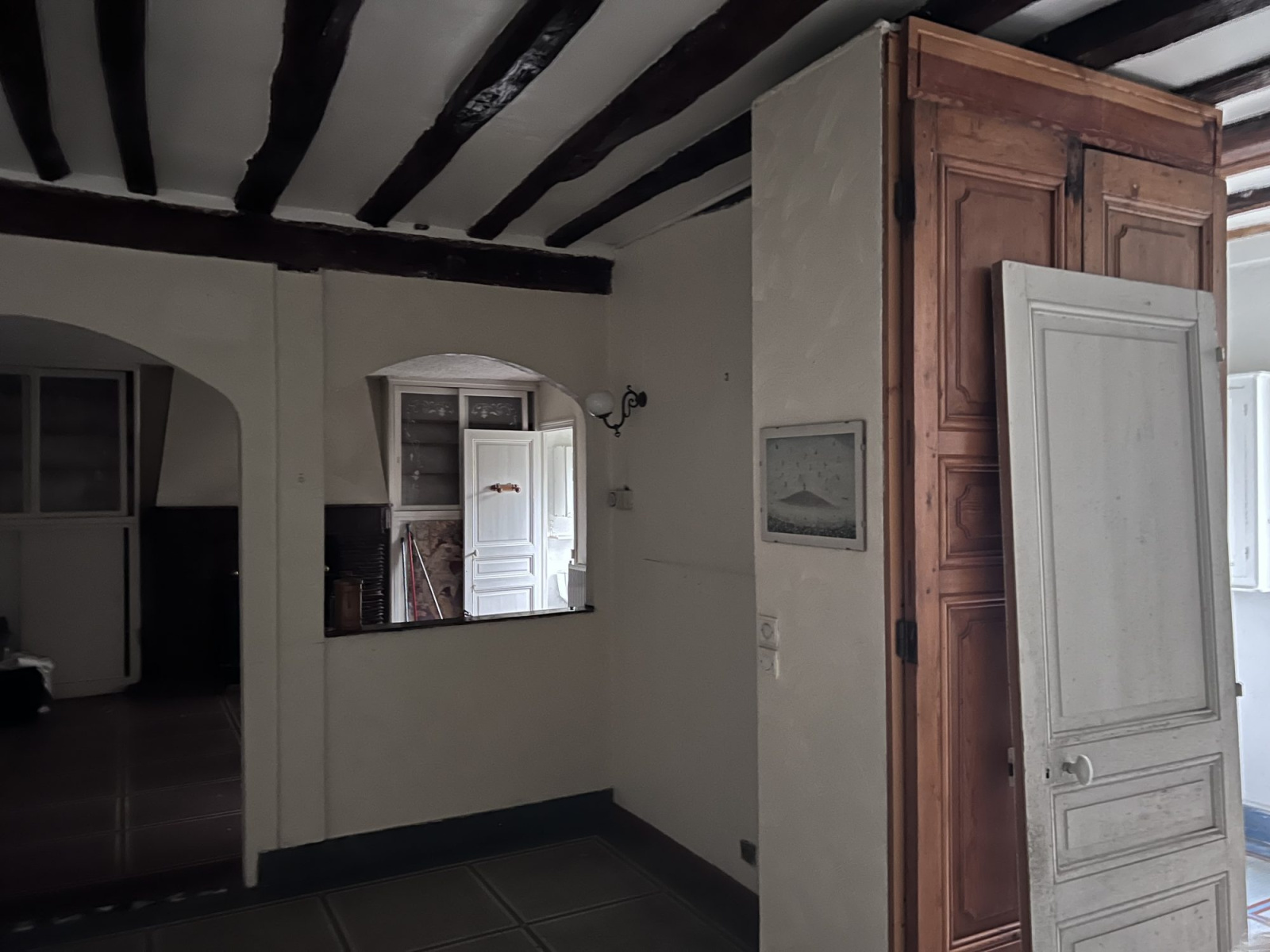La maison nécessite des travaux de rénovation, permettant de la remettre au goût du jour et de créer un intérieur à votre image. La cuisine indépendante aménagée, les menuiseries en bois, ainsi que les portes anciennes, apportent une ambiance chaleureuse et authentique.